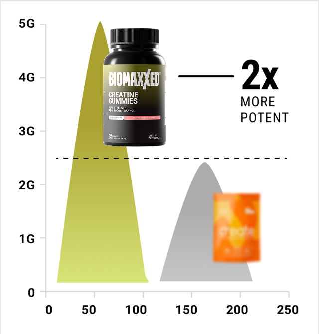 Both options are effective, but Biomaxxed Creatine Gummies make supplementation easier and more enjoyable. Unlike powders that need to be mixed into a drink, our gummies come pre-dosed, portable, and ready to take anywhere - perfect for on-the-go convenience while still giving you the full benefits of creatine.